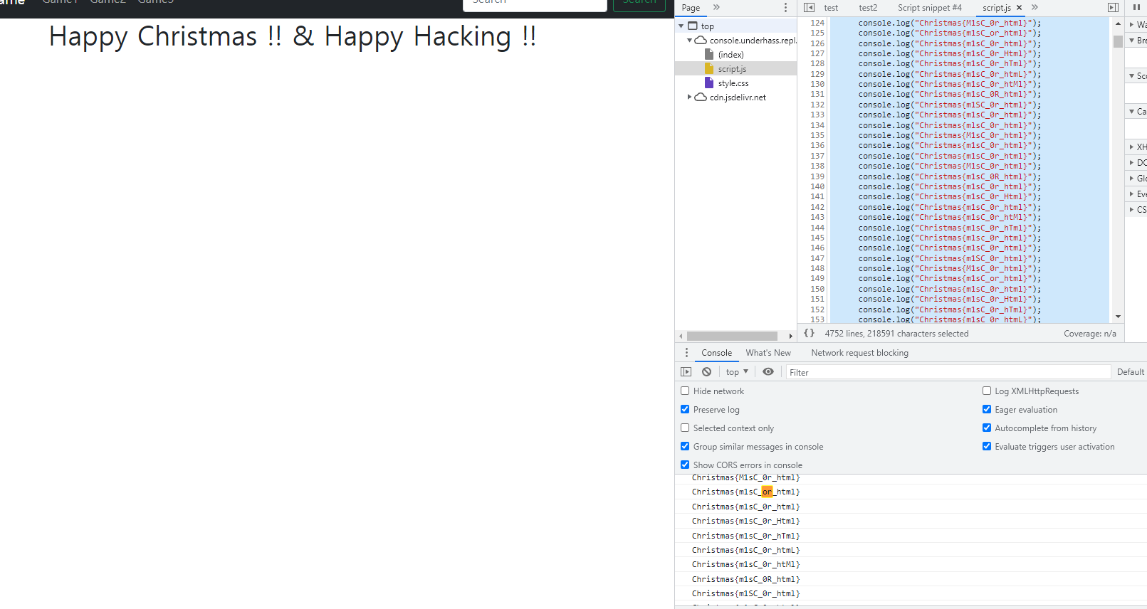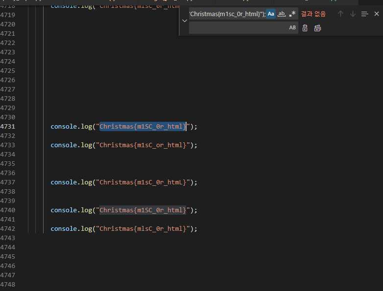 웹이 있고 안에 console.log로 엄청난 양의 flag를 찍어내는 것이 있다.