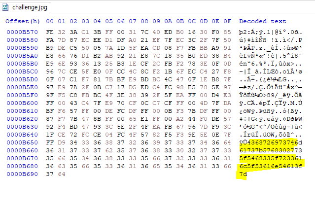 이미지를 Hex viewer로 보면 맨 하단에 의심스러운게 있다.