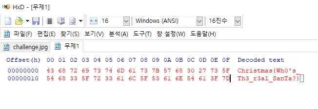Hex 에디터로 까니 적당한 곳에 플래그가 있다.