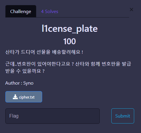 # answer1 = "Christmas{l1CenSE_p1ATe_AZM9590}"