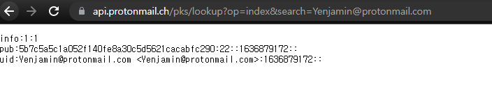 https://api.protonmail.ch/pks/lookup?op=index&search= 여기서 메일 룩업을 할수있다.
