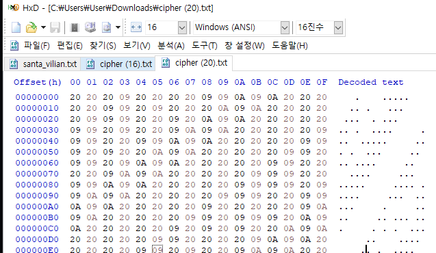 주어진 텍스트는 탭과 스페이스바, 개행문자로 이루어진 텍스트다.
